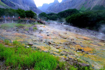 在瀑布下方、二道白河的右側,分布著高熱類型的泉群,水溫在懾氏60至82度之間,展面約一千多平方米,有十余處噴涌口,也稱聚龍泉。